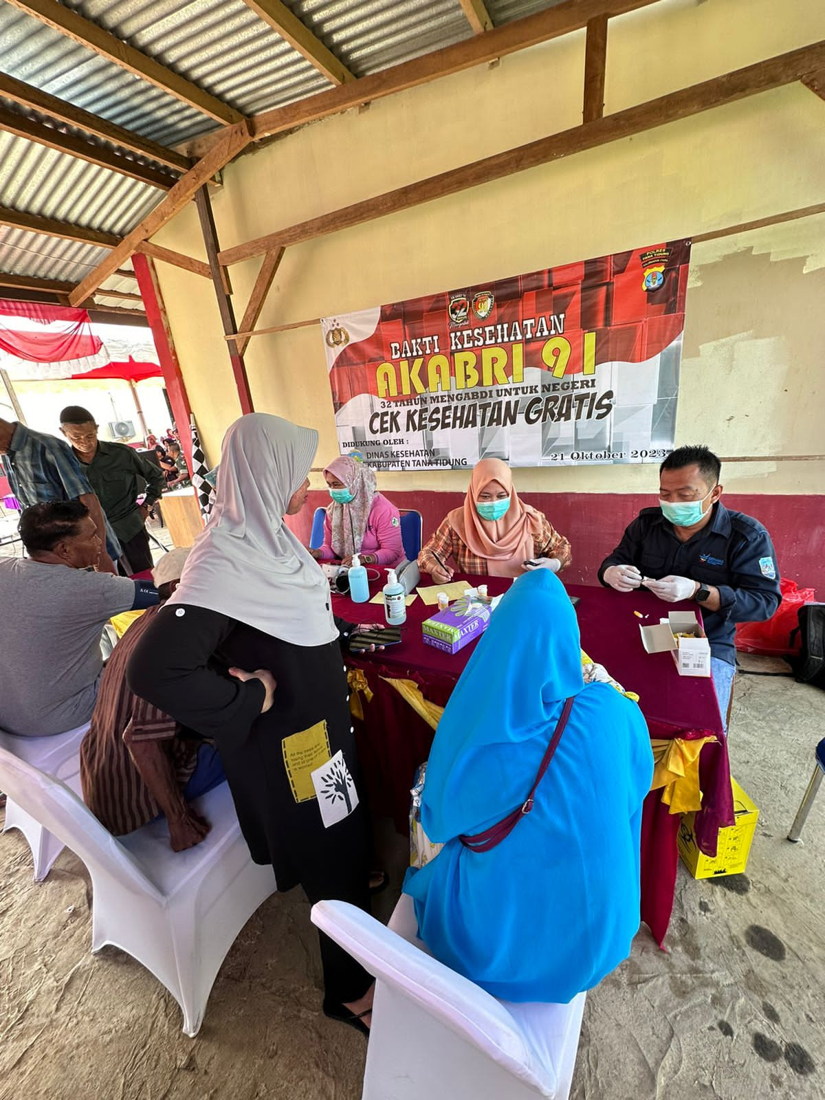 Pemeriksaan Kesehatan (Deteksi Dini Penyakit Tidak Menular) gratis yang dilaksanakan oleh Polres Tana Tidung berkolaborasi dengan Dinas Kesehatan dalam kegiatan "Bakti Kesehatan AKABRI 91..