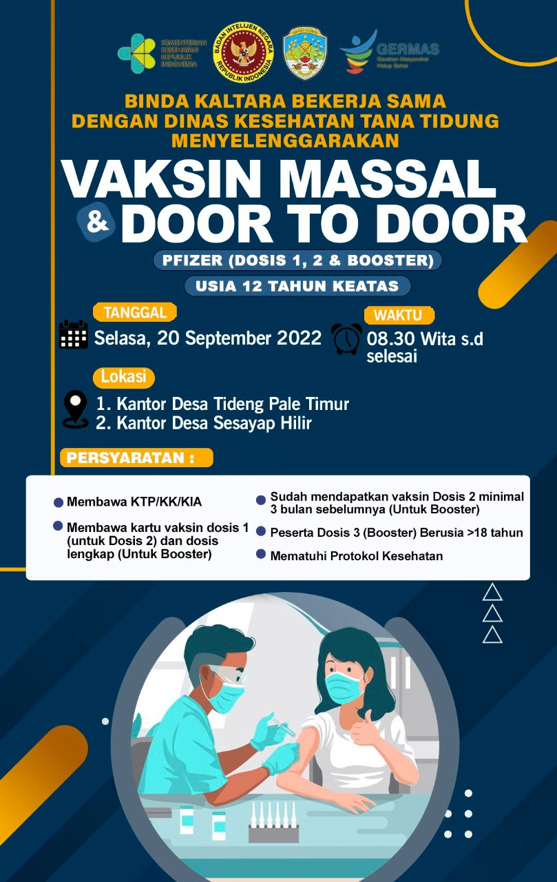 Binda Kaltara Bekerja Sama dengan Dinas Kesehatan Kabupaten Tana Tidung Menyelenggarakan VAKSIN MASSAL & DOOR TO DOOR