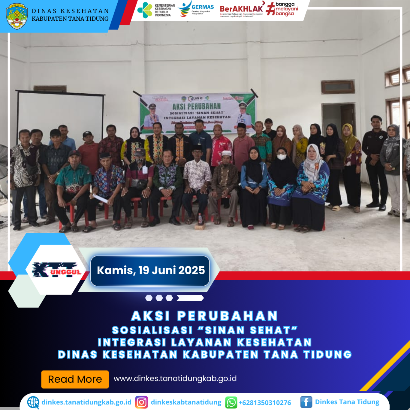 Dinas Kesehatan Kabupaten Tana Tidung kembali mencatatkan langkah progresif dalam dunia pelayanan kesehatan. Melalui inovasi bertajuk SINAN SEHAT ( Integrasi layanan..