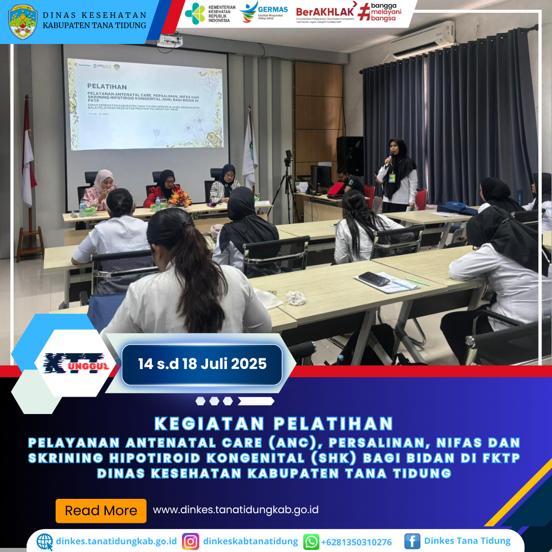 Pelatihan Pelayanan Antenatal Care (ANC), Persalinan, Nifas dan Skrining Hipotiroid Kongenital (SHK) bagi Bidan FKTP Dinas Kesehatan Kabupaten Tana Tidung dilaksanakan pada tanggal 14-18 ..