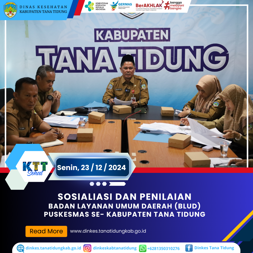 Dinas Kesehatan Kabupaten Tana Tidung melaksanakan kegiatan Sosialisasi dan Penilaian BLUD Puskesmas, kegiatan tersebut dibuka langsung oleh Sekretaris Daerah ..