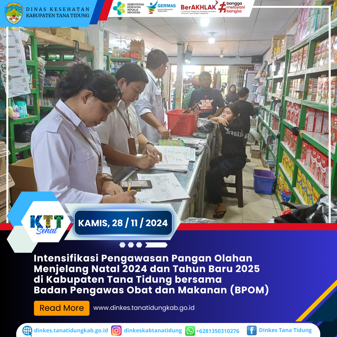 Memasuki masa Natal 2024 dan Tahun Baru 2025, Badan POM bersama Dinas Kesehatan Kabupaten Tana Tidung kembali melakukan intensifikasi pengawasan pangan olahan ..