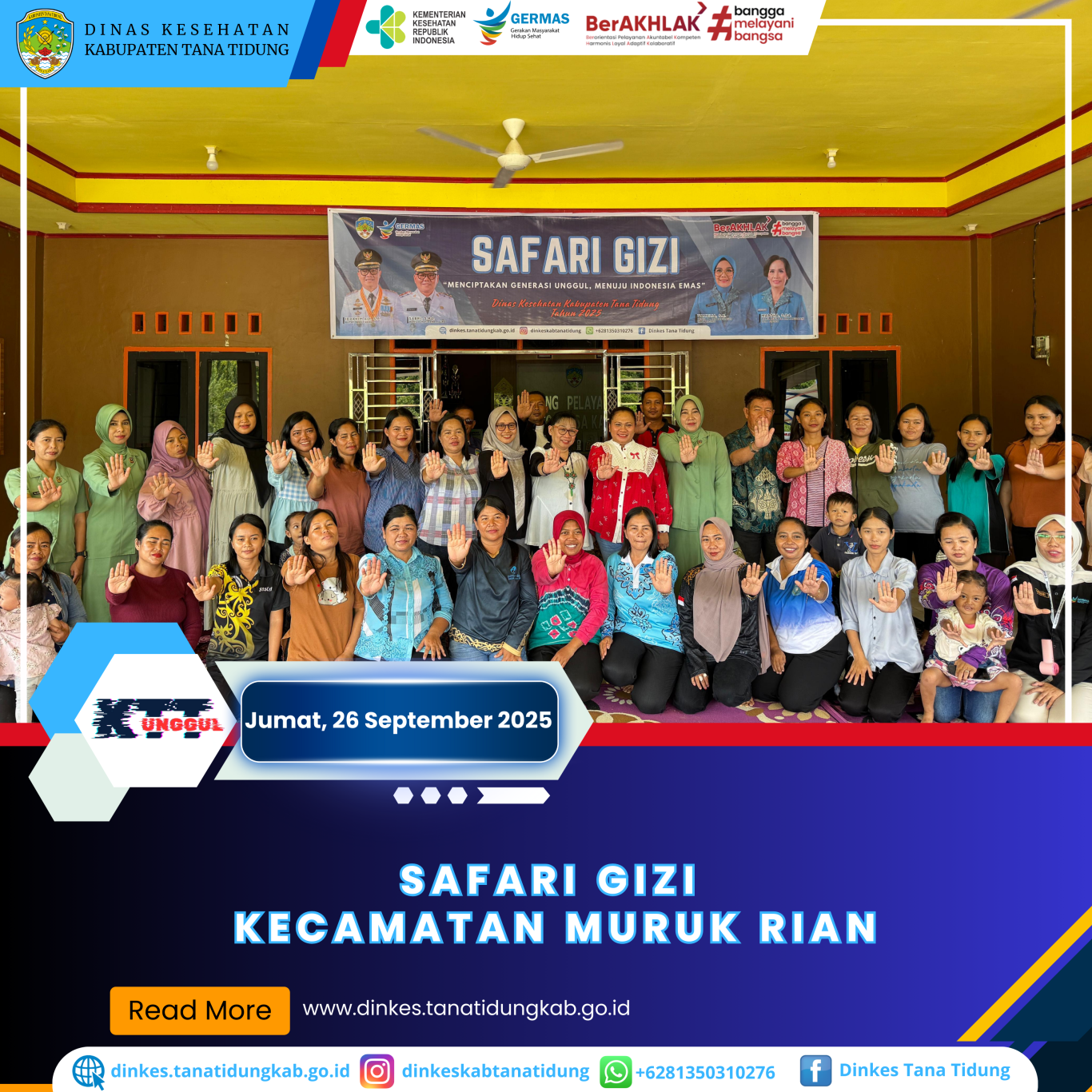 Pemerintah Kabupaten Tana Tidung melaksanakan kegiatan Safari Gizi untuk wilayah Kecamatan Muruk Rian, di Aula Kantor Desa Kapuak. Safari Gizi merupakan salah ..