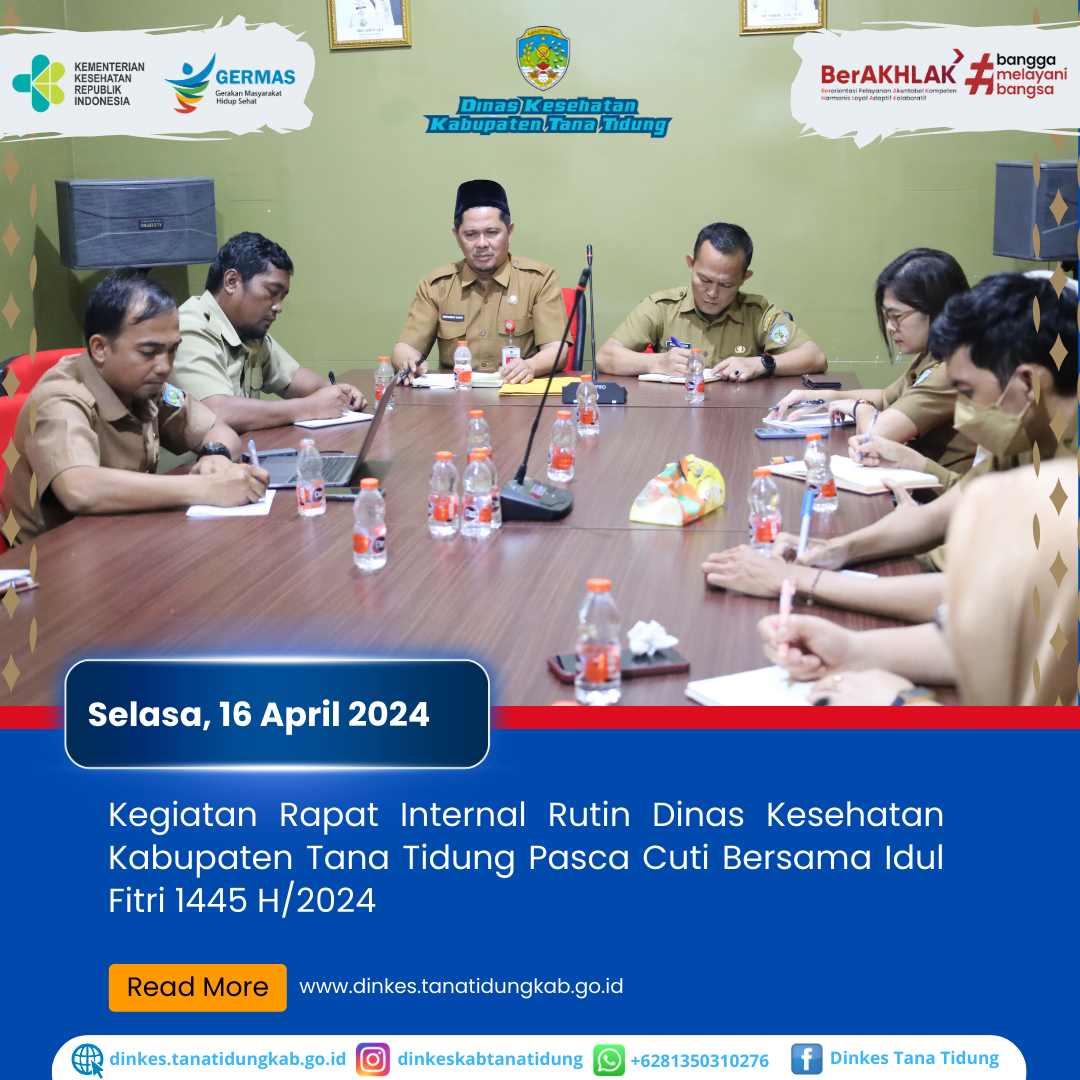 Kegiatan Rapat Internal Rutin Dinas Kesehatan Kabupaten Tana Tidung Pasca Cuti Bersama Idul Fitri 1445 H/2024 yang dipimpin langsung oleh Kepala Dinas Kesehatan Bap..