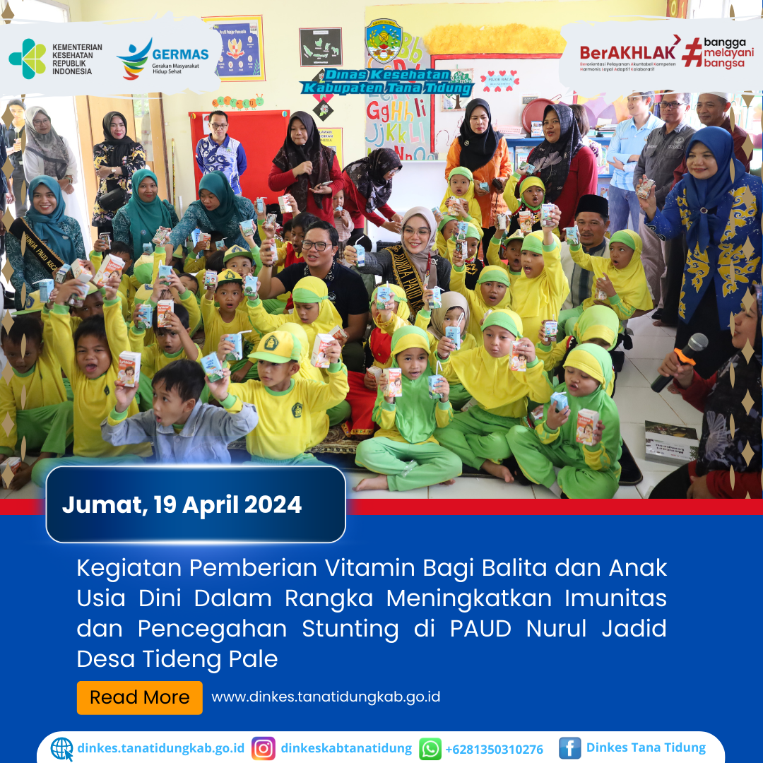 Kegiatan pemberian vitamin bagi balita dan anak usia dini dalam rangka meningkatkan imunitas dan pencegahan stunting di PAUD Nurul Jadid, Desa Tideng Pale.