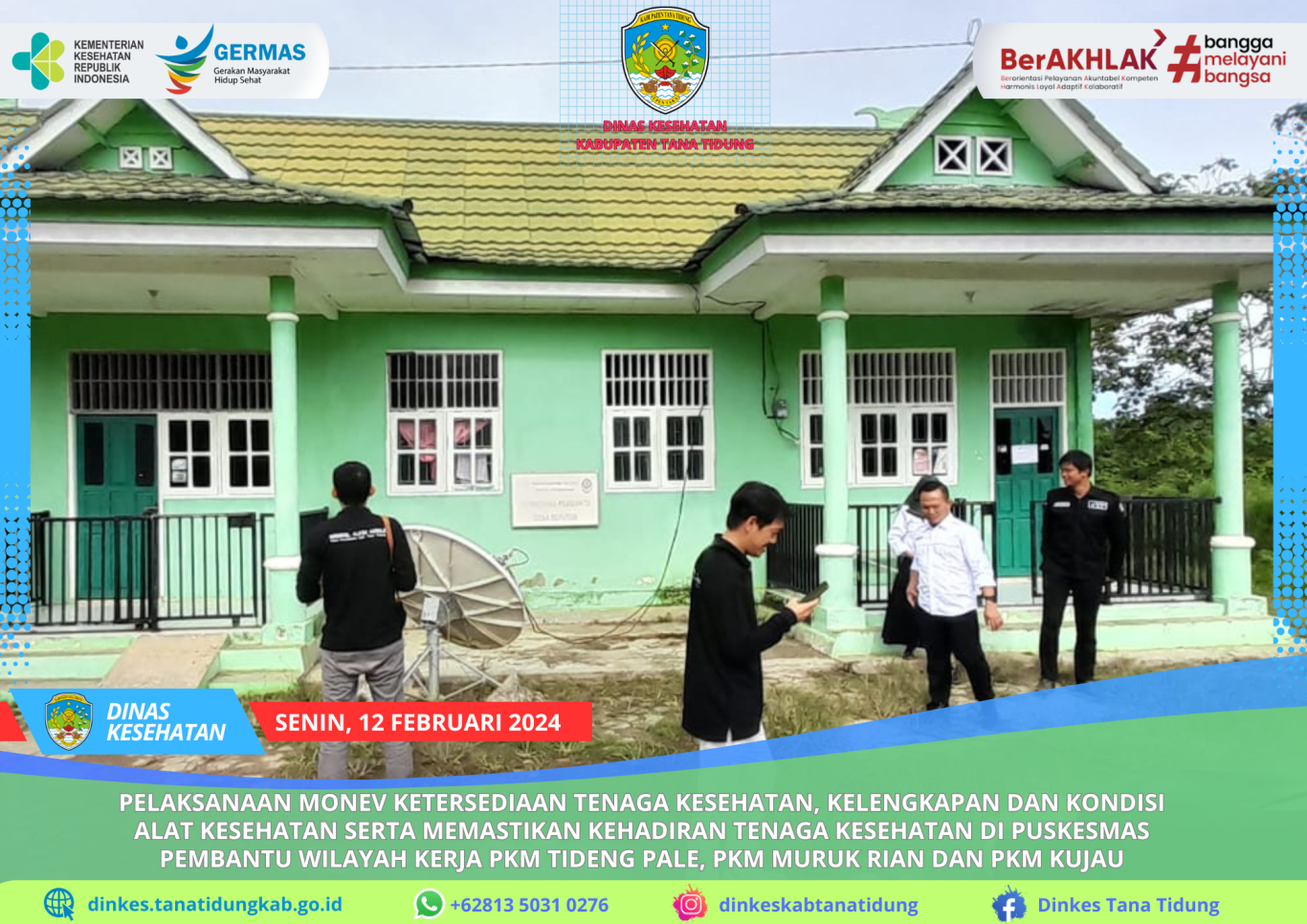Pelaksanaan Monev ketersediaan tenaga kesehatan, monitoring kelengkapan dan kondisi alat kesehatan serta memastikan kehadiran tenaga kesehatan di Puskesmas Pembantu ..