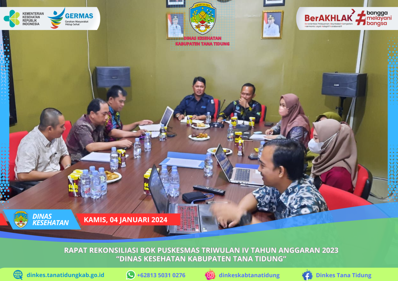 Rapat Rekonsiliasi BOK Puskesmas Triwulan IV Tahun Anggaran 2023 kegiatan dilaksanakan di ruang rapat Dinas Kesehatan, pada kesempatan tersebut kegiatan dibuka langs..