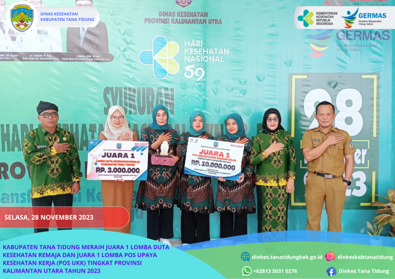 Kabupaten Tana Tidung meraih Juara I Lomba Duta Kesehatan Remaja yang diraih oleh Nurul Fatmi Lutfiah dari SMA Terpadu Unggulan I Kabupaten Tana Tidung. Duta Kesehatan Remaja ini merupaka..