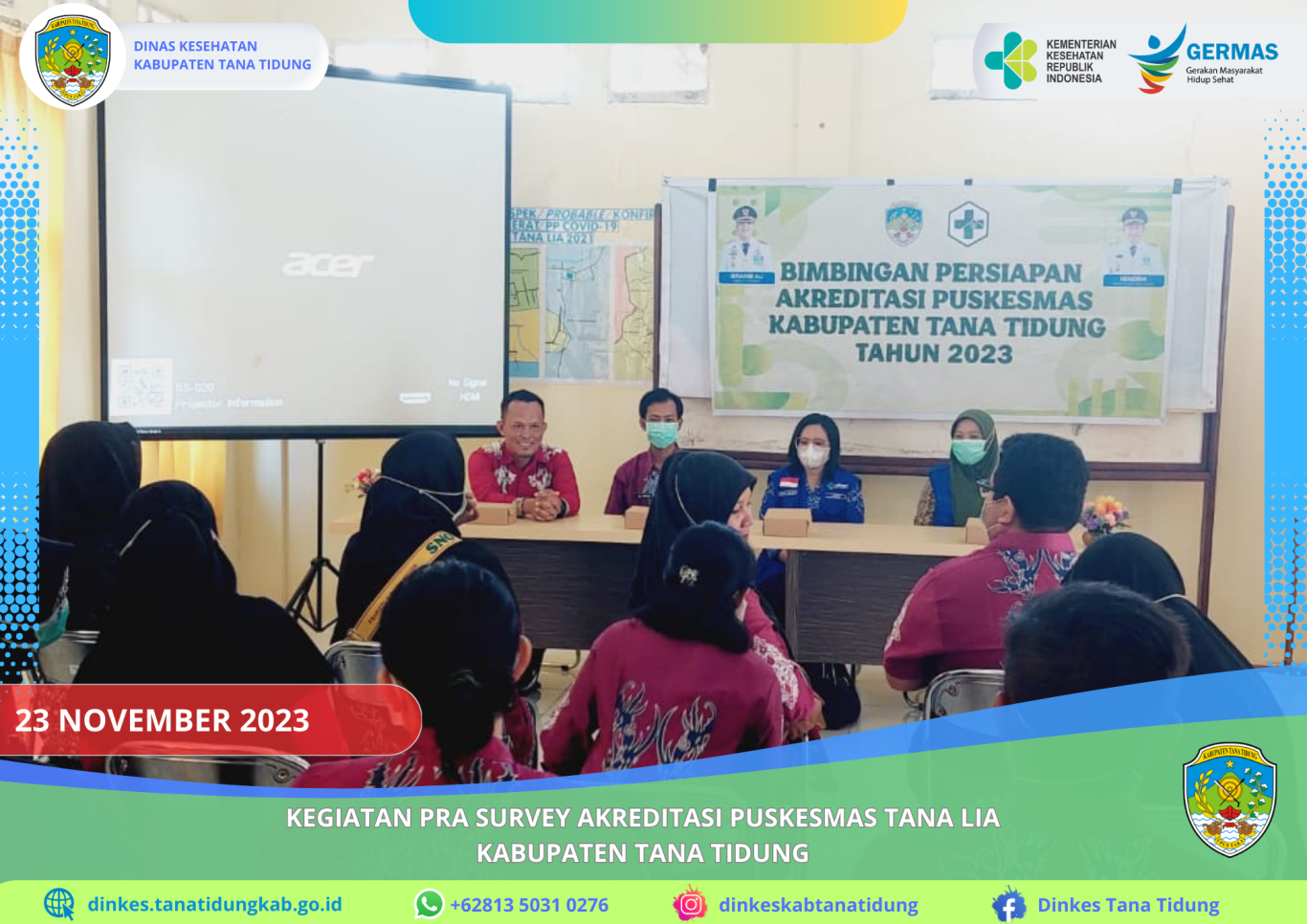 Kegiatan Pra Survey Akreditasi Puskesmas Tideng Pale Dinas Kesehatan Kabupaten Tana Tidung yang dilaksanakan oleh tim Lembaga Survey Akreditasi Provinsi Kalimantan..